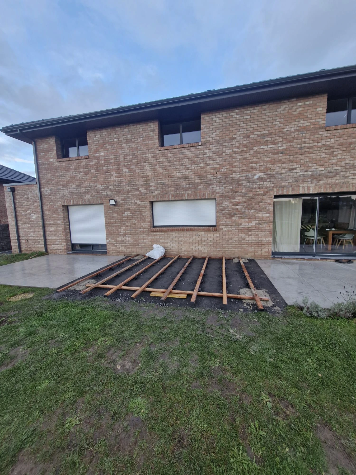 Nous avons réalisé la création complète d’une terrasse de 18 m² en bois exotique Massaranduba, reconnue pour sa grande densité, sa résistance naturelle aux intempéries et sa longévité en extérieur.